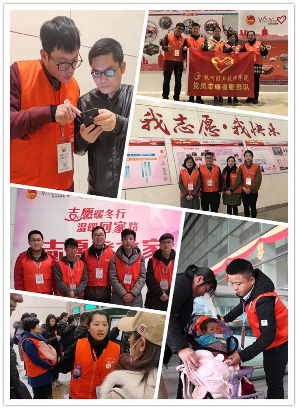 每年春运期间,学院党团支部响应团市委、市志愿者协会号召,积极投身“青年志愿行 温暖回家路”志愿服务活动,为返乡旅客提供引导咨询、协助购票、秩序维护、老弱帮扶等服务,用实际行动践行了党团员为民服务的初心,让来自五湖四海的旅客们真正感受到了家的温暖。其中2018年荣获“杭州市春运优秀集体”,多名师生先后被授予“全国铁路春运优秀志愿者”。