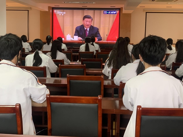 学院青年师生第一时间集中收看了庆祝大会实况视频直播。习近平总书记重要讲话在学院师生中引起热烈反响。
