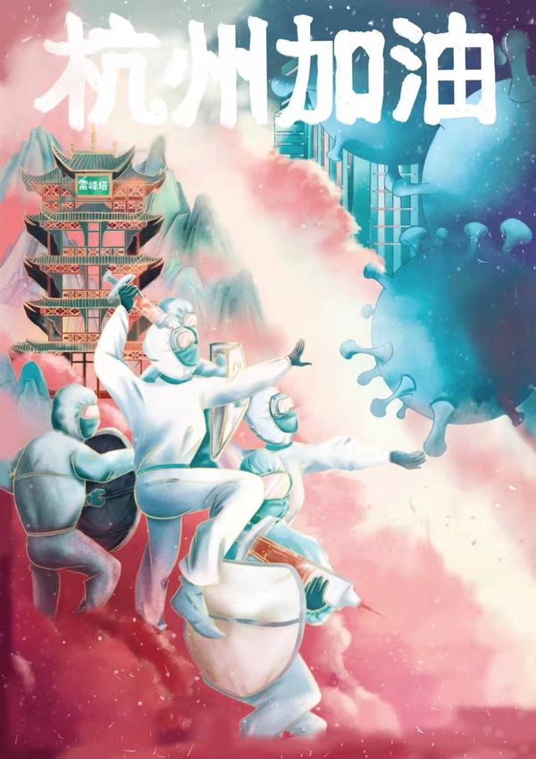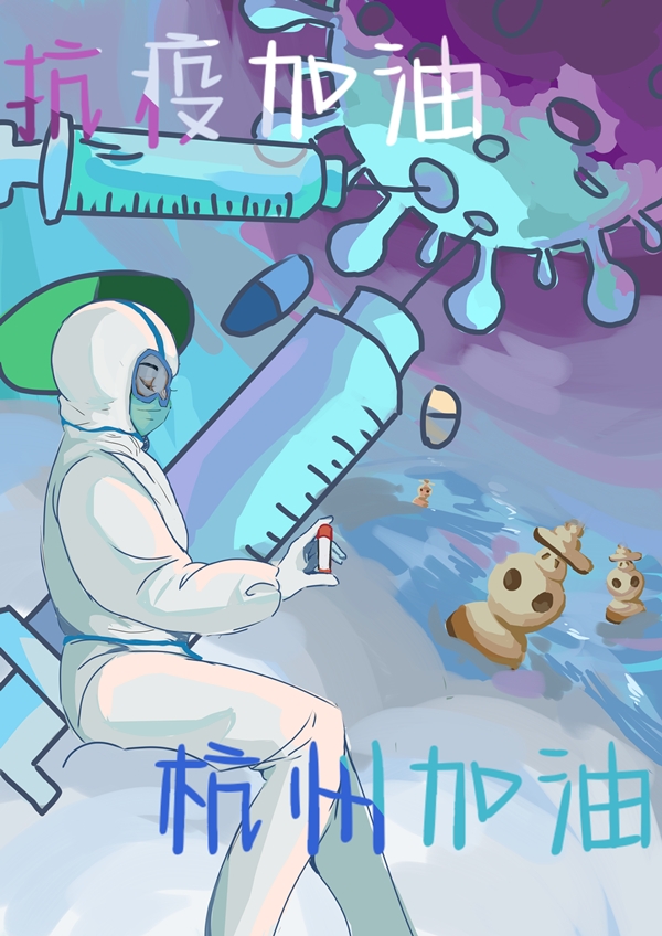 2021年岁末,杭城新一轮新冠肺炎疫情来袭。面对这场没有硝烟的战争,杭州快速行动,各行各业的“疫”线人员和志愿者积极响应,顶着寒冬坚守岗位,全力严防严控,默默为抗击疫情做出贡献。在全民众志成城抗击疫情的关键时期,学院艺术系学子发挥创作才能和专业优势,纷纷拿起手中画笔,再度“艺”起抗疫,用画笔深情描绘全民抗疫的感人事迹,传递正能量。