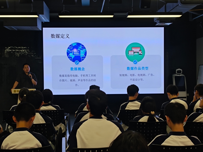 活动首日,学生们来到杭报集团,不仅在社史馆中追溯了杭报集团的光辉历程,还亲身体验了杭州网演播厅的魅力,化身主播,感受了文化产业的风采。数智融媒产业学院的企业导师更是为学子们带来了一场趣味十足的数字媒体现场授课,深入浅出地讲授了拍摄技巧及人工智能的应用,激发了学生们对未来职业的无限憧憬。