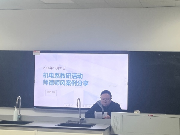 随后,机电系系主任陈禹主持师德师风案例交流。结合职业教育育人要求,陈主任通过典型案例剖析,进一步明确了教师在传授专业技能的同时,更应注重培育学生的职业素养与道德品质,筑牢育人根基。