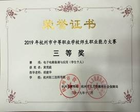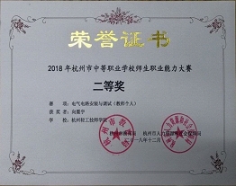 引入ISO9001:2000质量管理体系并通过认证,各项管理规范,实行理实一体化教学,突出技能训练,师生积极参加国家和省市各类技能竞赛,胡建华老师获得全国技工教育和职业培训教学研究成果一等奖、浙江省技工院校电工电子专业教师微课设计和制作比赛一等奖、浙江省中等职业学校职业能力大赛三等奖;方飞老师获得“振兴杯”全国青年职业技能大赛省选拔赛二等奖,获得“浙江省青年岗位能手”称号;向震宇老师获得杭州市中等职业学校师生职业能力大赛二等奖;张熙同学获得浙江省师生创新创意大赛三等奖;高海扬、沈俊杰、黄莞庭同学分别在杭州市中职师生技能大赛电子产品安装与调试项目比赛中获得铜牌。