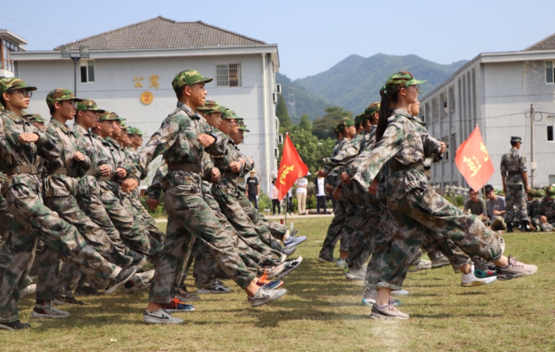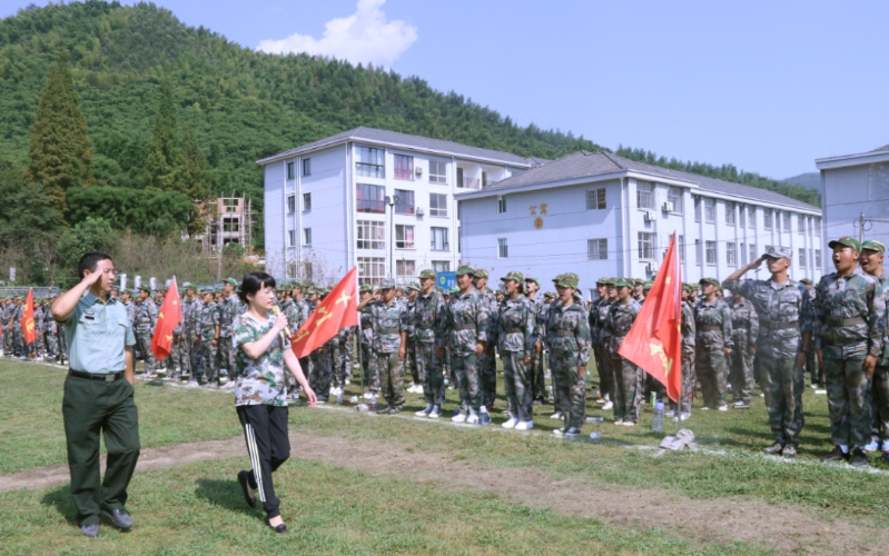 学院纪委书记、副院长吴应霞在浙江戎创国防教育基地总经理毛文青的陪同下,检阅全体参训学生。