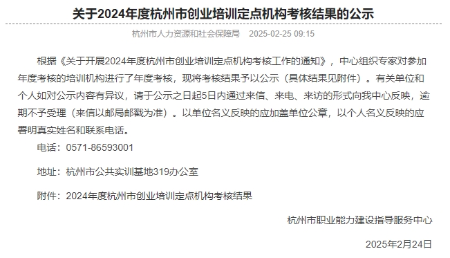 近日,由杭州市职业能力建设指导服务中心公布的2024年度杭州市创业培训定点机构考核结果中,学院培训学校荣获“五星级”定点培训机构。