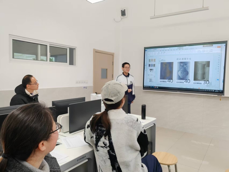 答辩现场,学生通过PPT展示自己的毕设构想,从选题背景、创作方式、实施过程计划等多维度向老师们介绍设计思路。老师围绕作品创新性、设计可行性与视觉效果等方面展开提问与点评,引导学生明确问题,完善方案。