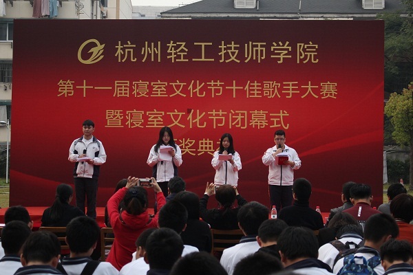 11月8日下午,杭州轻工技师学院第十一届寝室文化节十佳歌手大赛暨寝室文化节闭幕式颁奖典礼在莫干山路校区操场上隆重举行。学院院长杨国强,副院长吴应霞、吕杰英,各处室和系部代表,全院班主任和200余名学生代表参与活动。