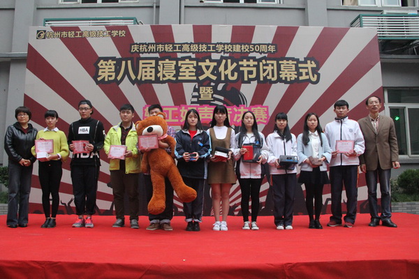 在寝室文化节闭幕式颁奖仪式上,副校长吕彦斌和吕杰英分别为获得各类奖项的团体和个人颁奖。