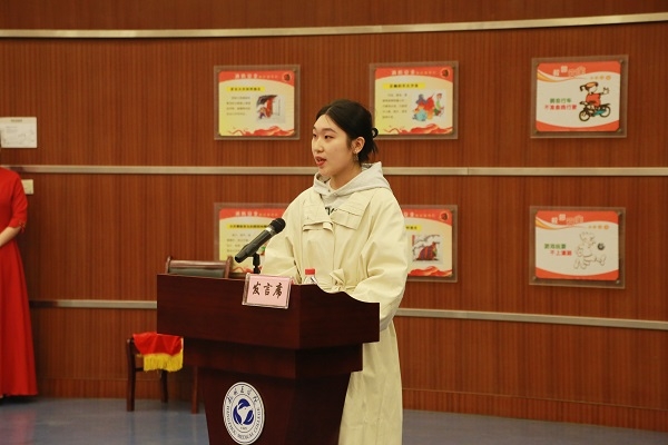 典礼上,我院药学系教师李悦,原16药剂1班学生,作为杭州医学院继续教育专科2021届药学专业校友代表鼓励新生们明确目标,明确努力的方向,以只争朝夕的劲头、坚韧不拔的毅力,一步一个脚印,为实现目标付出辛勤的汗水。
