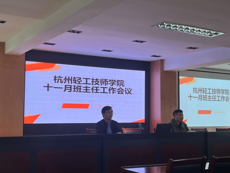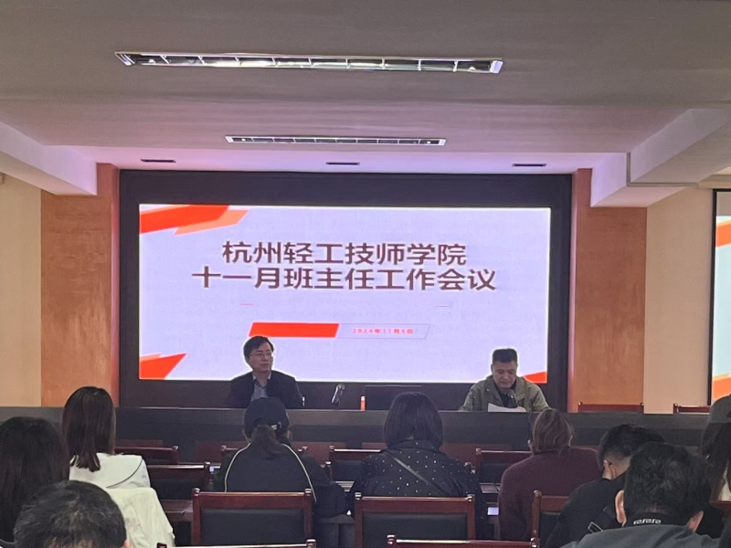 2024年11月6日下午,十一月班主任工作会议于莫干山路校区九楼会议室召开,会议由学生处处长何大志主持,副院长王洪良、学生处处全体科员及班主任参加了此次会议。