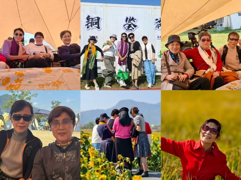 在工作人员的陪同下,老同志们或围坐在一起喝茶闲聊,畅谈工作往事,回忆往昔岁月;或沿着湖边漫步,呼吸清新的空气,欣赏着花海美景。大家不时驻足拍照留念,记录下这美好的瞬间。有的老同志还兴致勃勃地走进黄灿灿的稻田,与金色稻浪、草垛子来一场即兴合影,捕捉秋天的味道。