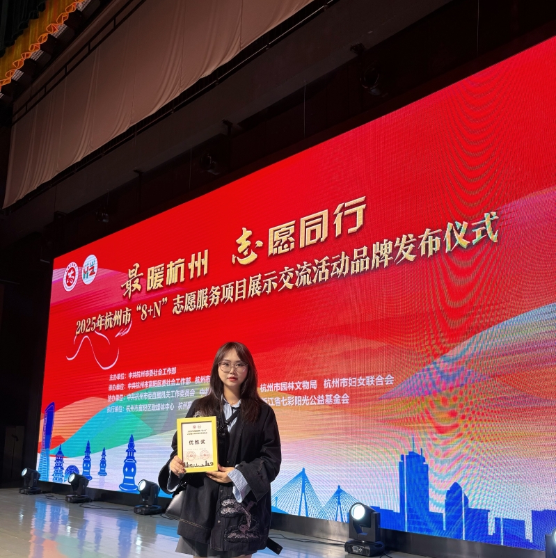 近日,中共杭州市委社会工作部和杭州市志愿服务联合会联合举办的2025年度杭州市“8+N”志愿服务项目展示交流活动圆满落幕。学院团委组织参与的“顶上功夫·益剪风采”志愿服务项目从众多参赛项目中脱颖而出,荣获优胜奖。