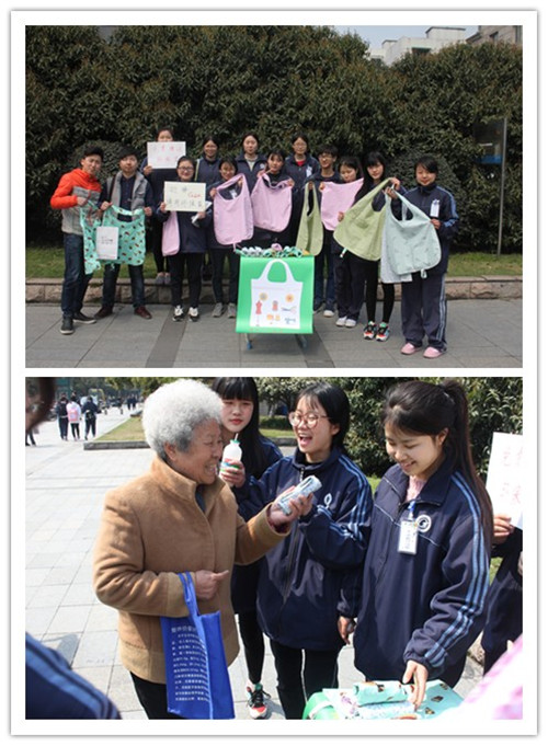 2016年3月11日中午,高技16服装班班干部在环城北路校区前门开展了“迎接G20,请用环保袋” 的学雷锋主题活动,她们利用课余时间在方壁君老师的指导下制作了精美的环保袋,并为主题活动提前准备了宣传海报。路过的群众被我们的活动吸引,停下脚步,同学们主动上前宣传保护环境的重要性,并赠送他们环保袋。同学们精美实用的环保袋,受到了大家的一致好评,这不仅展现了轻工学子的专业技能,又为G20环保出行做好宣传。通过这次学雷锋活动希望人们能提高环保意思,为保护环境贡献自己的力量。