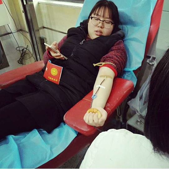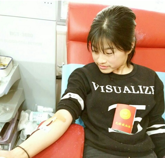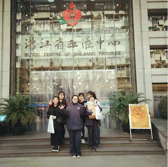 服装班的多名同学来到浙江省血液中心,参与无偿献血活动,累计献血量