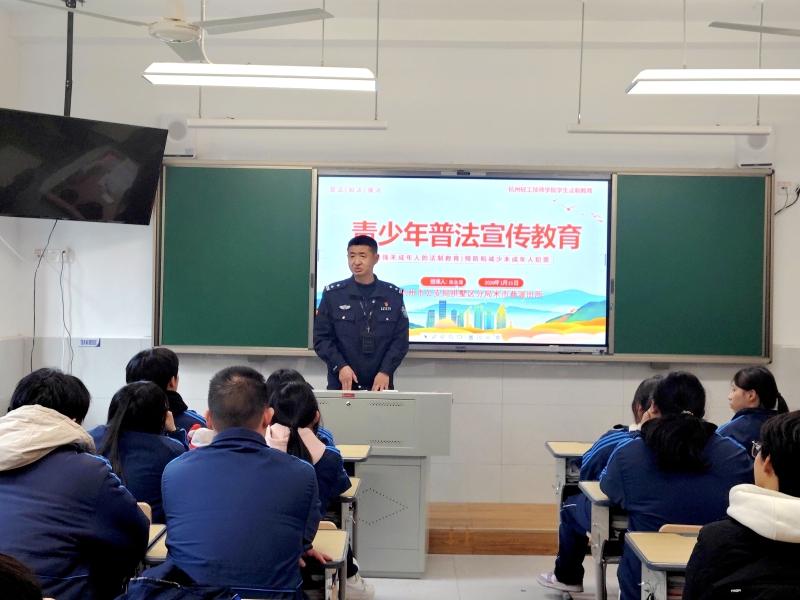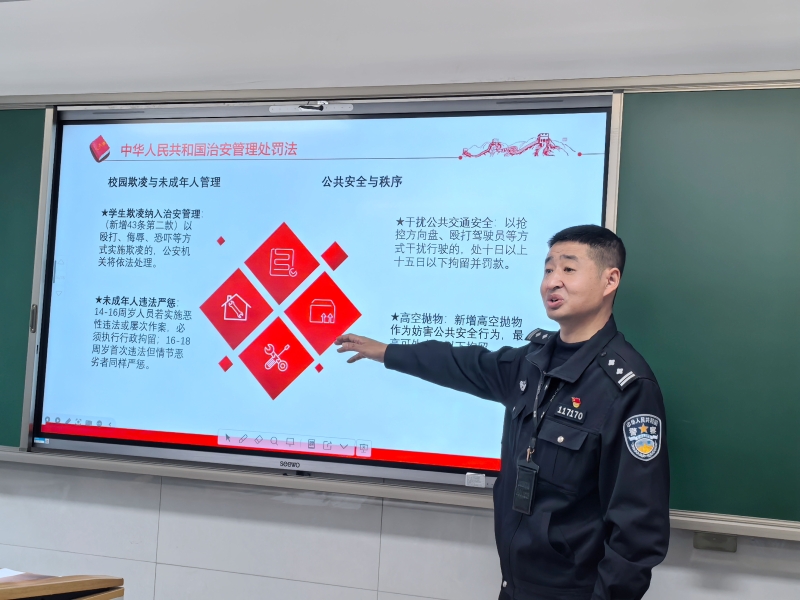 为强化学生法治观念,助力学生端正思想、规范言行,远离违法风险,1 月 15 日下午,我院特邀辖区派出所法治副校长宋永涛走进莫干山路校区,开展新修订《中华人民共和国治安管理处罚法》主题教育班会课。