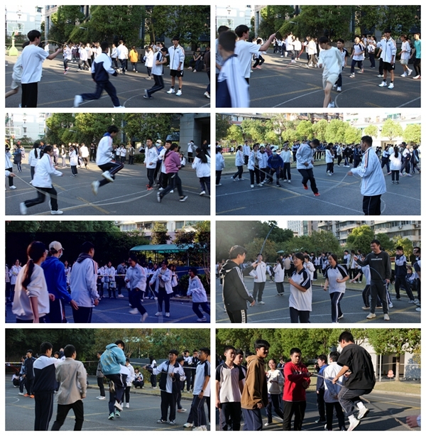 操场上欢呼声、呐喊声一片,到处洋溢着青春气息,各位老师们也被深深感染纷纷加入到了队伍中,师生携手共创最佳“绳彩”……
