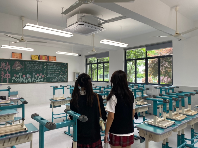 (来访学生走进教室)