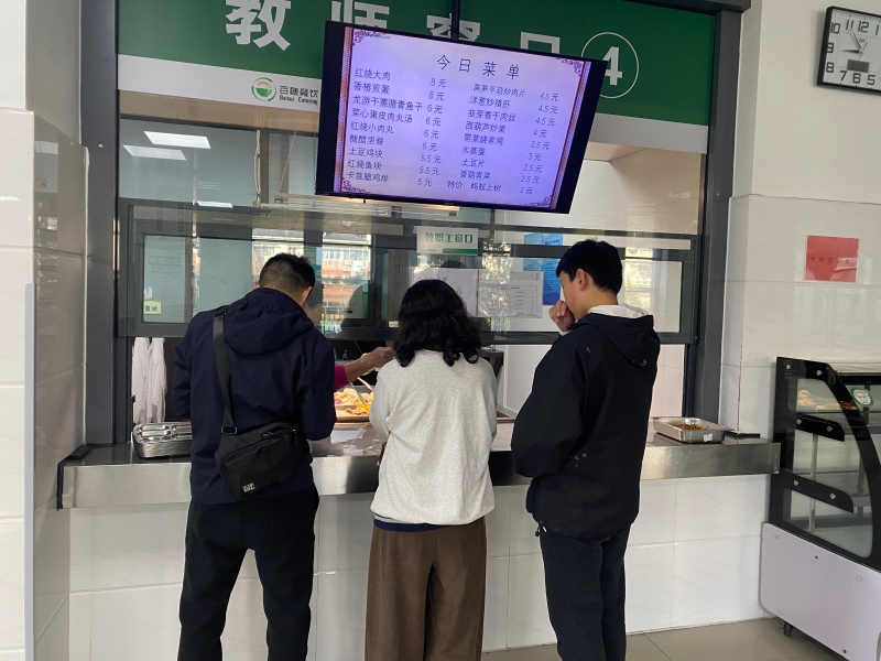 (来访家庭亲尝食堂饭菜)
