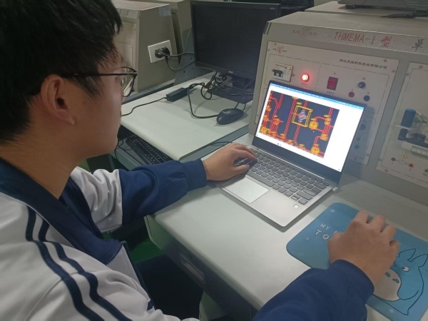 为备战2025年杭州市中等职业学校师生技能大赛“电子产品设计与应用”赛项,杭州轻工技师学院机电系宋浩、崔艺炜、吴同新三名同学在指导教师胡建华的带领下,正紧锣密鼓开展备赛训练。