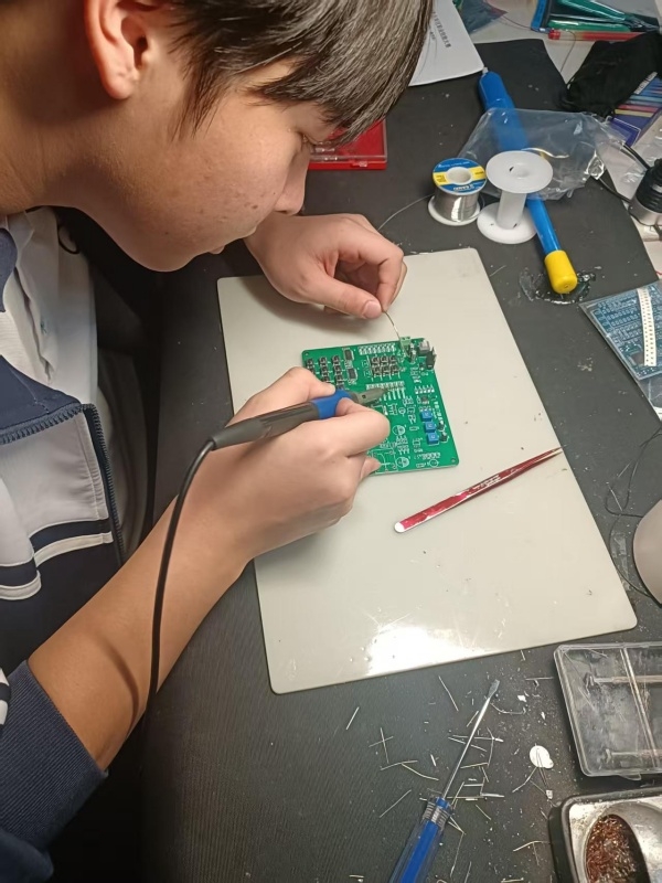 本次赛项涵盖线路板装调、电路检修、PCB设计、单片机编程等核心内容,要求选手兼具扎实技能与良好职业素养。备赛期间,胡建华老师依据竞赛规程,精准对标110分评分标准,从焊接工艺、故障排查到程序编写逐一细化指导。宋浩、崔艺炜、吴同新同学全身心投入,每日沉浸在实验室,反复打磨线路板装配精度,钻研单片机C语言编程技巧,严格遵循“5S”原则规范操作,不断提升安全意识与仪器使用熟练度。