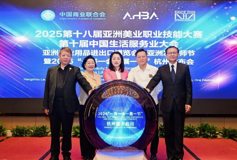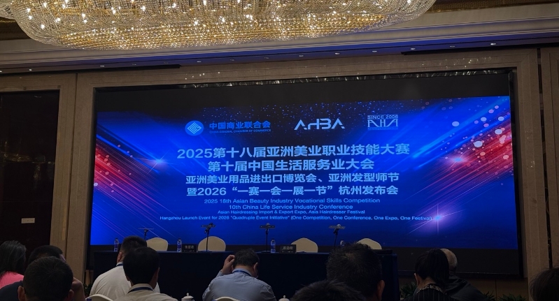 2025年4月17日,由中国商业联合会与亚洲发型师美容师协会有限公司联合主办,中国商业联合会商业职业技能鉴定指导中心、上海圣薇娜化妆品有限公司承办的2025年第十八届亚洲美业职业技能大赛第十届中国生活服务业大会(亚洲美业用品出口博览会、亚洲发型师节暨2026“一赛一会一展一节”杭州发布会)在杭州新侨饭店举行盛大启幕。