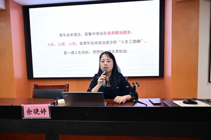 随后,余晓婷老师以“加入共青团”为核心,为学生们提供了全面细致的入团指引。她从入团基本条件、申请流程、考核评价标准等基础内容入手,逐一拆解关键环节,尤其对入团申请书的撰写规范、思想汇报的核心要求进行了详细讲解。结合自身多年团务工作经验,余老师通过真实案例,提醒学生们在日常学习生活中要注重品德修养,积极参与技能竞赛、志愿服务、班级建设等活动,以实际行动践行入团初心。针对学生们提出的“如何提升综合素质”“团组织考察重点”等疑问,她耐心解答、精准指导,让大家对入团之路有了清晰认知。