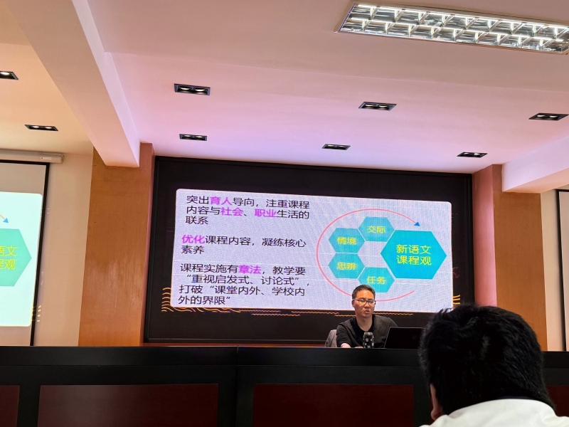 活动伊始,陈华老师向大家介绍了语文中心组活动创建的目标意义,深入解读国家统编新教材教学研究与新语文课程观的丰富内涵。他着重强调“课标为纲,学生为本,德育为魂”的新语文教学指导思想,生动阐释如何在课堂内外将立德树人的根本任务落地生根。随后,陈老师指出,语文优质课堂建设应以传承和弘扬中华优秀文化为基石,深度展现技工院校语文教育在拓展文化视野、理解文化多样性方面的独特作用。同时,他向在场教师强调,作为课堂的核心,要不断提升对课程的理解与把控能力,以及运用“新教材”开展教学改革的专业能力。最后,陈老师介绍了学业水平测试题库的编写重心和未来应用。