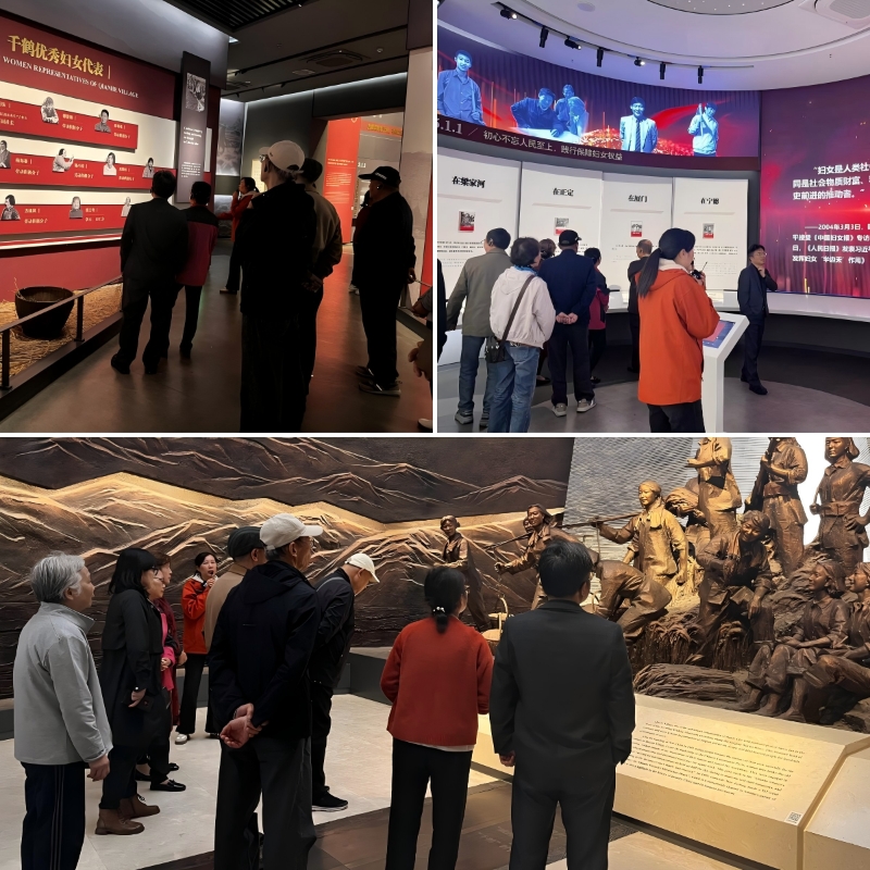 11月5日13:00,退休党员们准时在学院102校区集合,乘坐大巴前往活动首站——千鹤妇女爱国主义教育基地。作为全国妇女爱国主义教育基地,这里生动记录了千鹤妇女在革命、建设与改革各个时期的奋斗历程。在讲解员的引导下,党员同志们认真参观展厅内的珍贵史料、图片与实物,仔细聆听千鹤妇女“不等不靠、敢想敢干”的奋斗故事,深刻感悟妇女群体在历史进程中发挥的重要作用,对红色精神的时代价值有了更直观、更深刻的理解。