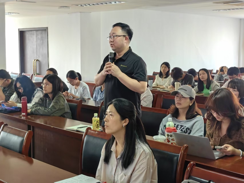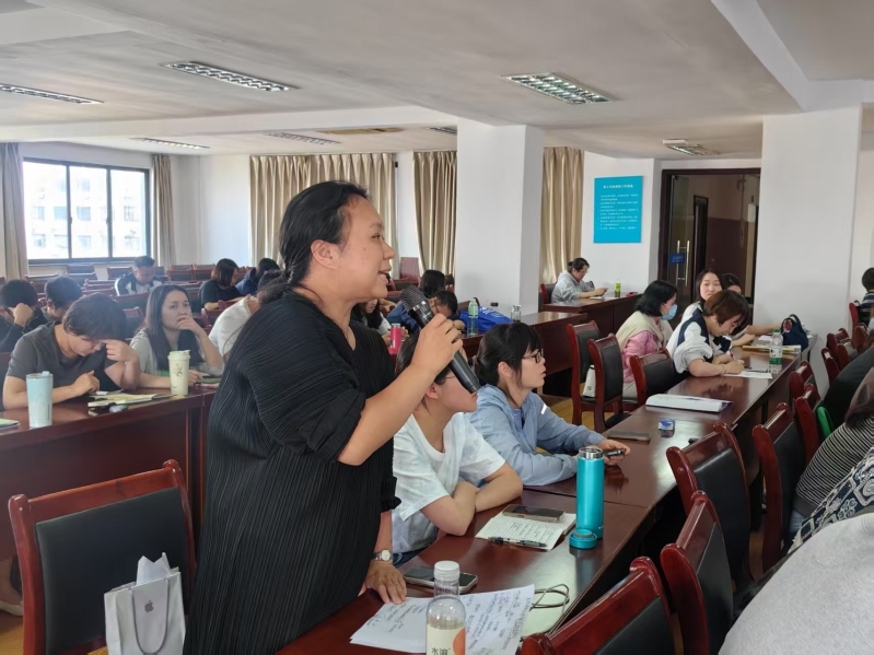 随后,戴老师组织与会教师围绕工学一体教学的各个环节展开深入研讨。从如何精准选择、开发契合基础课内容的工学一体专业,到灵活运用多样化教学方法,层层剖析,引导教师们探寻教学创新路径。以酒店管理英语教学为例,戴老师进行了细致入微的拆解,生动展示英语课程与酒店管理业务深度融合的具体方式,清晰呈现教学资源开发流程,凸显行动导向教学法在提升学生综合素养方面的显著成效。
