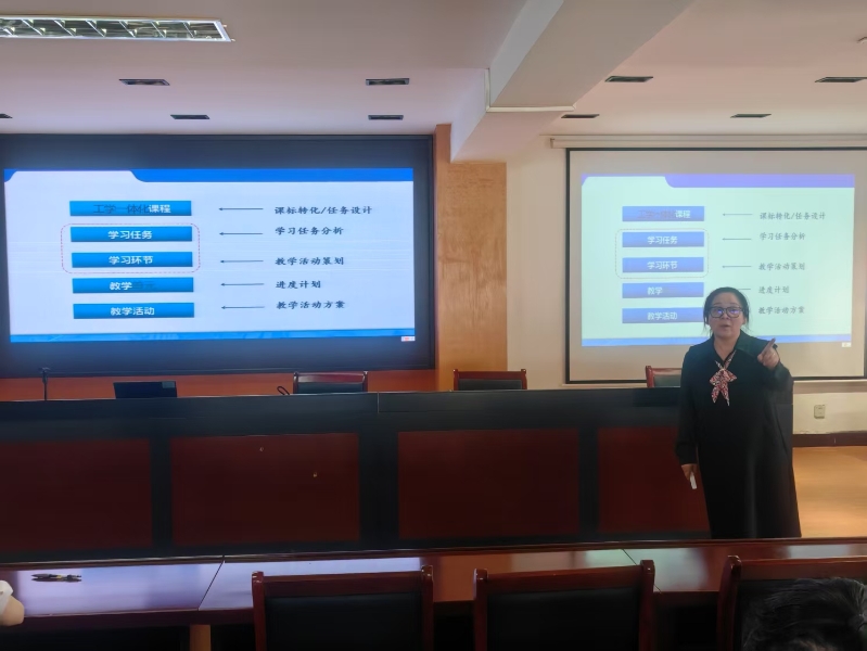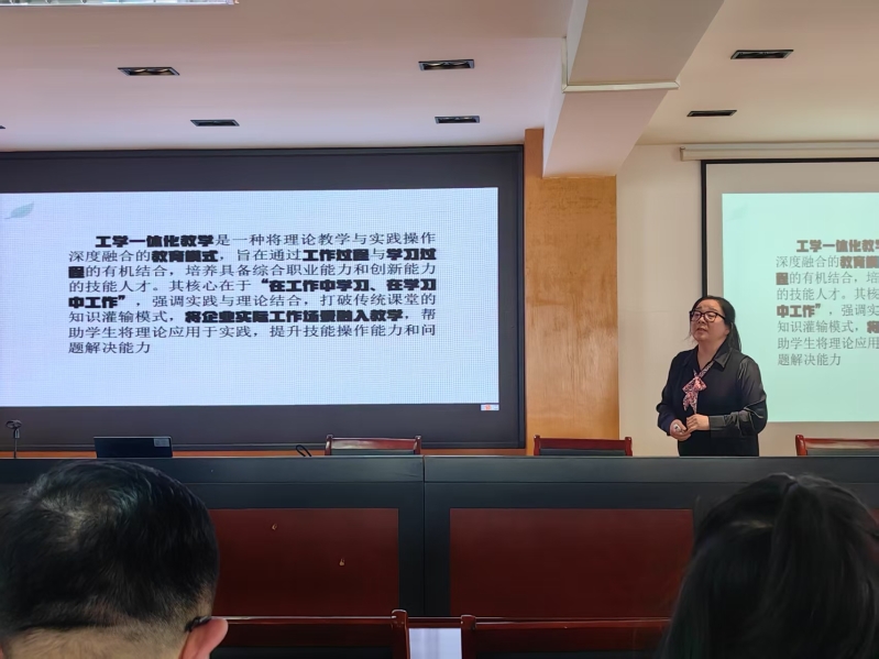 讲座伊始,戴晓燕老师系统梳理了工学一体教学改革的发展脉络,深入阐释其核心内涵,着重强调了这一教学模式在基础课教学中的应用价值,以及对师生成长的重要意义,为基础课教师们搭建起对工学一体化教学的整体认知框架。