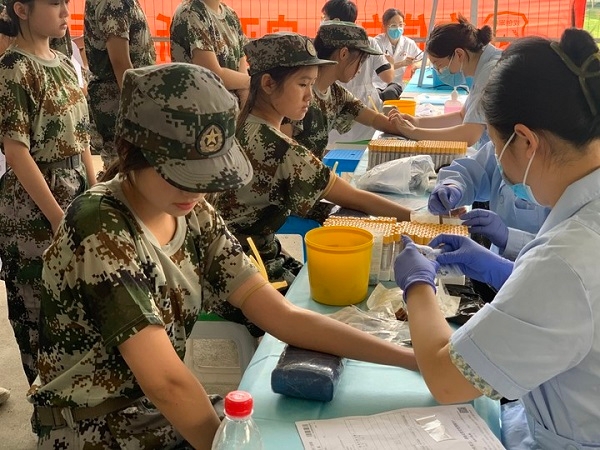 一大早,各班级连队在教官、班主任的指挥带领下有序排队,接收空腹抽血、血压、心电图、胸透、内外科等项目检查。医务人员保持严谨的工作态度、合理分工,对每个学生进行了认真细致地检查,对体检结果做了详细记录,同时,还有针对性地向学生提出了相关保健建议。新生们听从指挥,服从现场安排,分批次按要求分项目有条不紊完成各项目体检,整个体检过程秩序井然、安全高效。