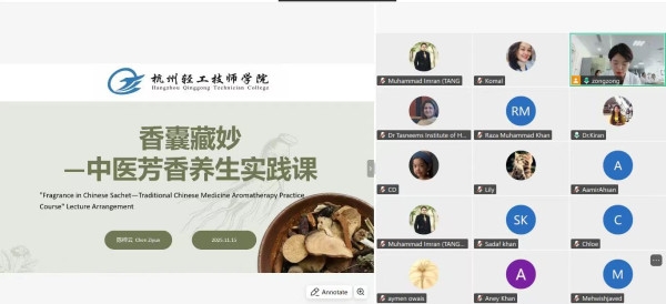 我院医药健康专业群在给Dr. Tasneem’s Institute of Health的巴基斯坦学员开展第一次线上授课后,倍受欢迎,有更多的学员积极报名参加培训。近日以“中药传统香囊制备”与“中药饮片调剂”为核心的第二次线上专项技能培训顺利开展。此次培训不仅延续了首期的精髓,更在深度与互动上实现了新的突破。