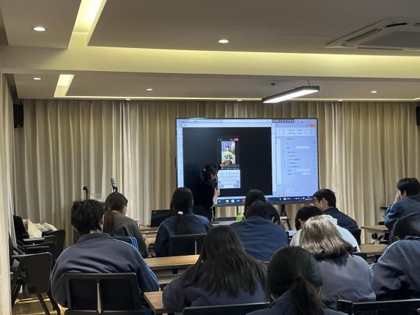 课堂中,梵音老师耐心的一步步指导学生如何实操,从如何在抖音平台上寻找爆款视频,如何快捷的获取视频中的文案,如何完成视频脚本的制作到短视频行为规范等等内容一一讲解,学生也表示从中学习到了非常多有用的知识。讲解完毕之后每位学生都现场实操拍摄了一段口播介绍,尝试在镜头前展示自己,表达自己,不少同学都有了新的尝试和突破。最后,梵音老师还悉心的引导同学们完成剪辑工作,形成一段段完整的短视频。