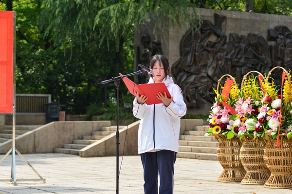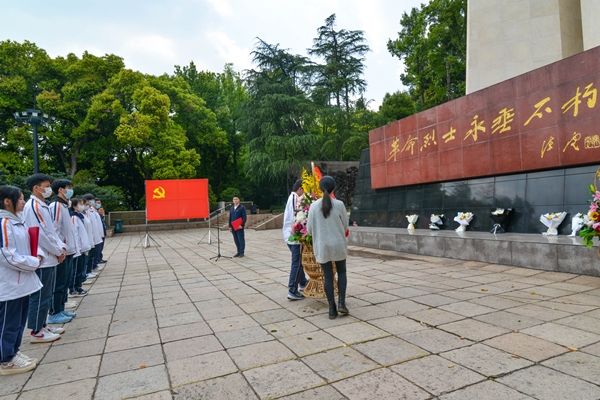下午2点,祭扫仪式在雄壮的国歌声中拉开序幕,党员代表黄芳老师和团员代表邱承航同学向革命烈士纪念碑敬献花篮,表达对烈士的崇高敬意与深切哀悼之情。