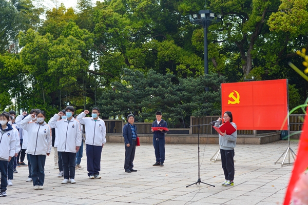 在尊严的烈士纪念碑前,党员和团员分别面向党旗、团旗重温了入党、入团誓词。誓言铮铮,初心如磐,饱满的热情、发自肺腑的承诺抒发着对理想的忠诚,铿锵有力的誓词久久回荡。