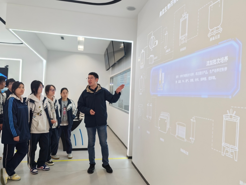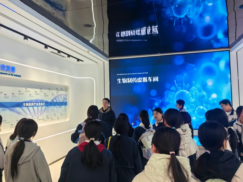 同学们跟随杭职大老师,参观了杭州医药港,了解生物制药的发展历程,并通过VR模拟体验生物发酵制药的相关流程。