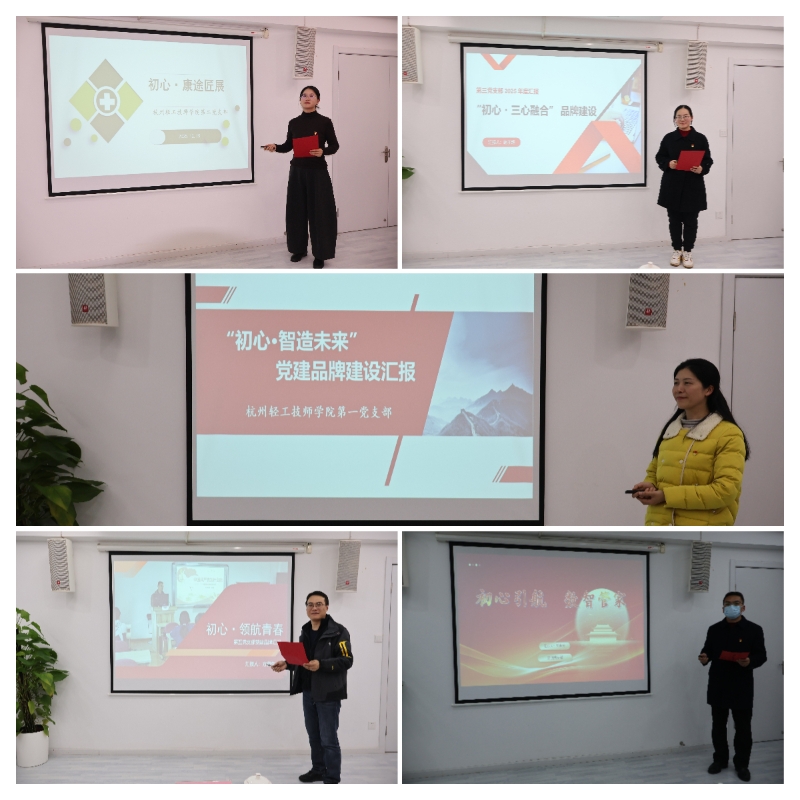 第一支部以“初心・智造未来”为品牌核心,立足机电系专业特色与办公室综合服务职能,聚焦高技能人才培养与科技创新融合,在技能竞赛、技术攻关等方面取得显著成果;第二支部围绕“初心・康途匠展”品牌定位,结合药学系专业特色与培训处社会服务工作内涵,聚焦大健康领域,深耕健康服务领域技能培育;第三支部秉持“初心・三心融合”品牌理念,将匠心、潜心、廉心融入党建与艺术系教学和财务工作,提升了支部凝聚力和工作效能;第四支部以“初心・数智管家”为品牌方向,结合基础信息系系部与综合处中心工作,聚焦数字化专业特色和服务管理创新,为师生提供高效便捷的数字化服务支撑;第五支部立足“初心・领航青春”品牌特色,紧扣青年党员成长与学生培养,将党的红色基因融入技能学习、校园生活、社会实践等各个青春场景,激发青年群体的奋斗热情与创新活力。汇报过程中,各支部代表逻辑清晰、重点突出,以生动的案例、详实的数据和鲜明的特色,充分展现了基层党建工作的创新实践与丰硕成果,赢得了评委的一致认可。