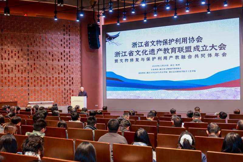 2025年11月29日,浙江省文化遗产教育联盟成立大会暨文物修复与保护利用产教融合共同体年会在浙江大学西溪校区隆重举行。我校艺术设计与制作专业群负责人程翔代表学院参会,见证这一文化遗产教育领域的里程碑时刻。此次大会以“共商、共建、共育、共享”为主题,汇聚高校、行业协会、企业近二百位代表,共同擘画浙江省文化遗产保护与教育协同发展新蓝图。作为联盟理事单位,我校艺术设计与制作专业群将以此次加入联盟为契机,深耕传统文化传承,推动文物活化利用,为文化强省建设注入职教力量。