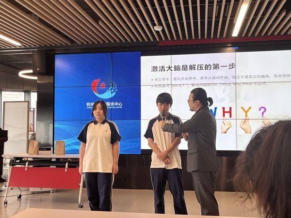 6月27日下午,杭州轻工技师学院师生代表在市党群中心开展“‘轻’听心语,青春守护”心灵释压主题团日活动。此次活动旨在帮助学生减压赋能,引导学生正确面对压力,认识压力,释放压力。