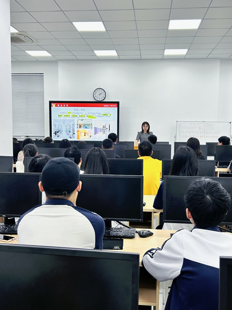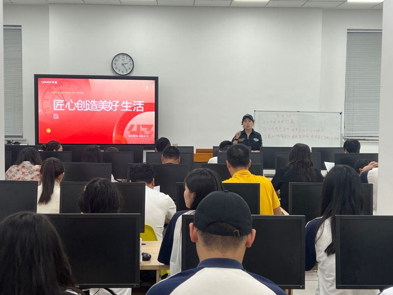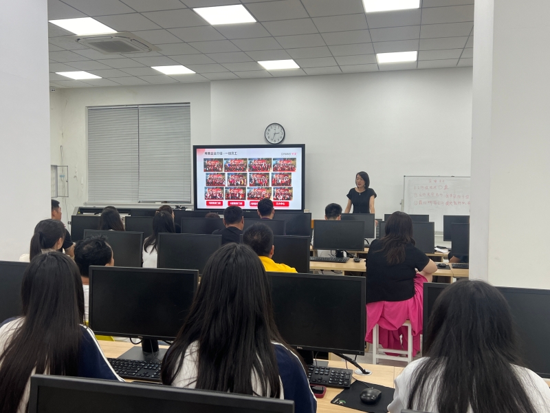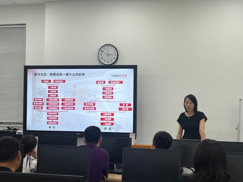 第三个议程由合作企业琴美的陈经理上台发言,她详细介绍了琴美的企业文化,并对学生们即将融入的工作环境给予了积极展望,让家长们感受到了企业对实习生的重视和关爱。