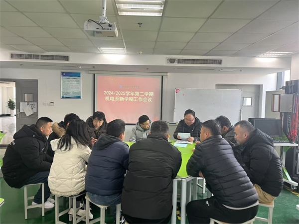 我院机电系于2月18日在403实训室开展2024/2025学年第二学期新学期机电系工作会议,本次会议由机电系陈禹主任主持,机电系全体教师参会。