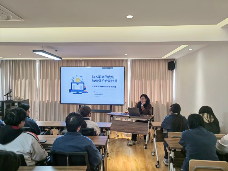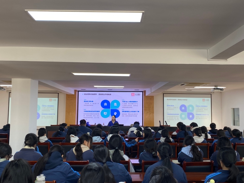 来自今元集团的裘老师以《把握未来就业趋势,迎接市场发展机遇》为主题,剖析近年来就业市场变化趋势与最新的就业扶持政策,聚焦产业岗位需求变化。结合授课班级的专业特点,就当前就业市场新变化与新趋势及行业面临人才紧缺,以及提升就业竞争力的具体渠道与方法等方面,与同学们进行互动。