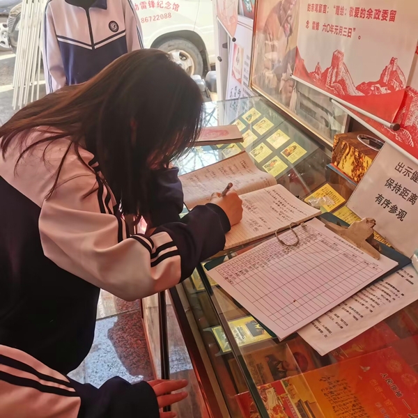 跟随讲解员的脚步,同学们怀着崇高的敬意一路参观,仔细聆听,通过瞻仰雷锋的遗物、观看实景照片、翻阅图书等方式,深入了解雷锋事迹故事,赓续红色基因,传承雷锋精神。
