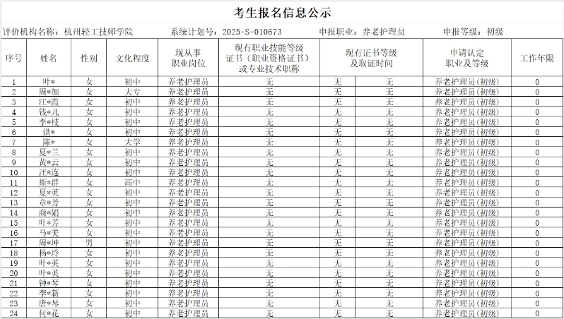 现将通过2025-S-010673批次养老护理员五级(初级)职业技能等级认定资格审核考生信息予以公示,公示期2025-12-10 17:00:00至2025-12-17 17:00:00,如对公示情况有异议,请电话或书面联系学院培训处。