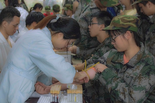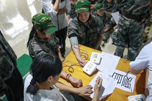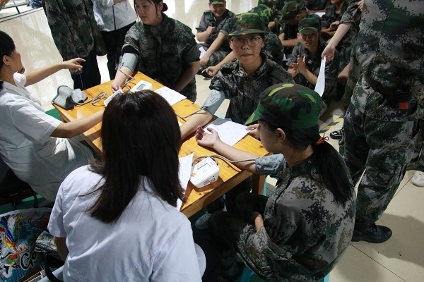 2019级新生参加了入学体检。在班主任、学长学姐们的组织与带领下,新生们有序地完成了五官科、内外科、身高体重、抽血、胸透、血压等各项目的检查。体检现场,同学们严格按照教官要求,不大声喧哗、不推搡拥挤。