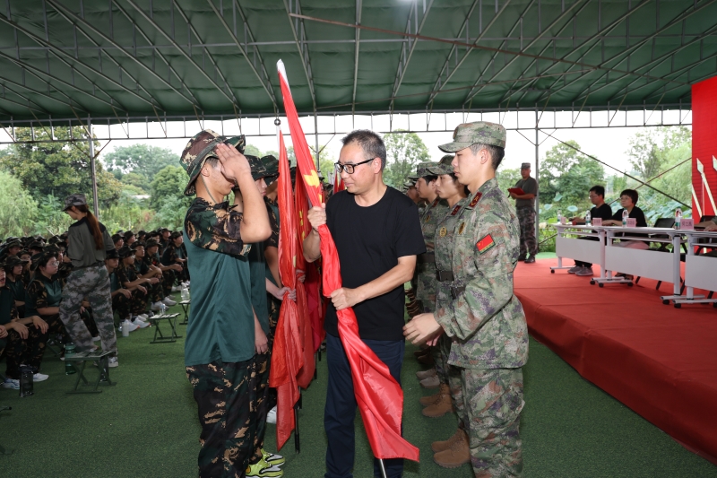 仪式最后,学院党委书记、院长周功扬为各连队授旗并宣布正式开营!