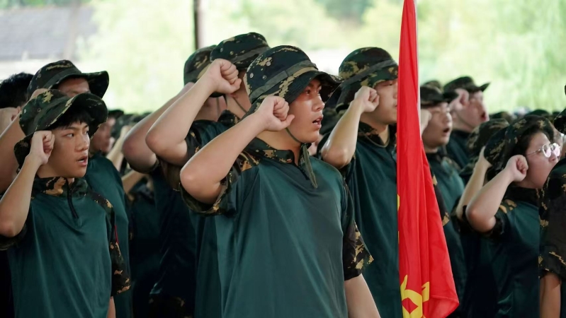 迷彩为笔,汗水为墨。9月1日下午,充满活力的2025级新生在杭州创欣实践基地参加开营仪式。