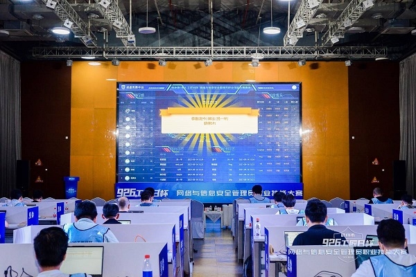 作为大赛承办方之一,我院严格按照市级一类竞赛要求全力做好赛事安排和技术支持。理论知识以《网络与信息安全管理员国家职业标准》中的高级工要求为标准,适当增加部分技师内容和相关新知识、新技能。操作技能部分按照现场CTF实战进行,题目难度分为高、中、低三个层次,38位选手的操作技能成绩以大屏投放的形式在现场实时公布。