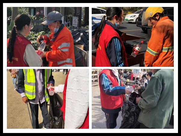 21药剂1班开展“学雷锋,致敬最美劳动者”活动,向一线环卫工人送去了温暖,开展1小时“今天我是值日环境小卫士”活动,用实际行动向平凡而又伟大的环卫工人致敬。