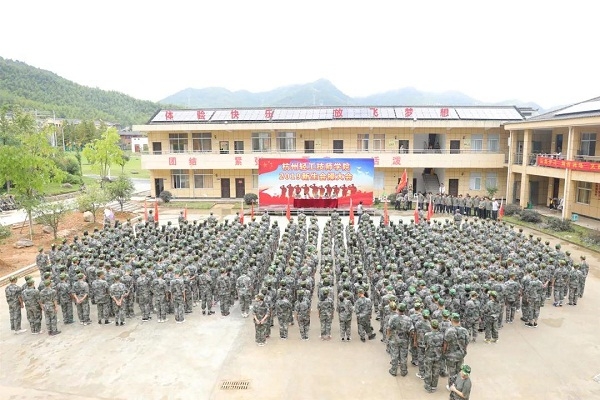 9月6日上午九点半,在经历为期6天的迎烈日、受风雨后,杭州轻工技师学院2019新生军训会操在浪漫山川国际营地举行。