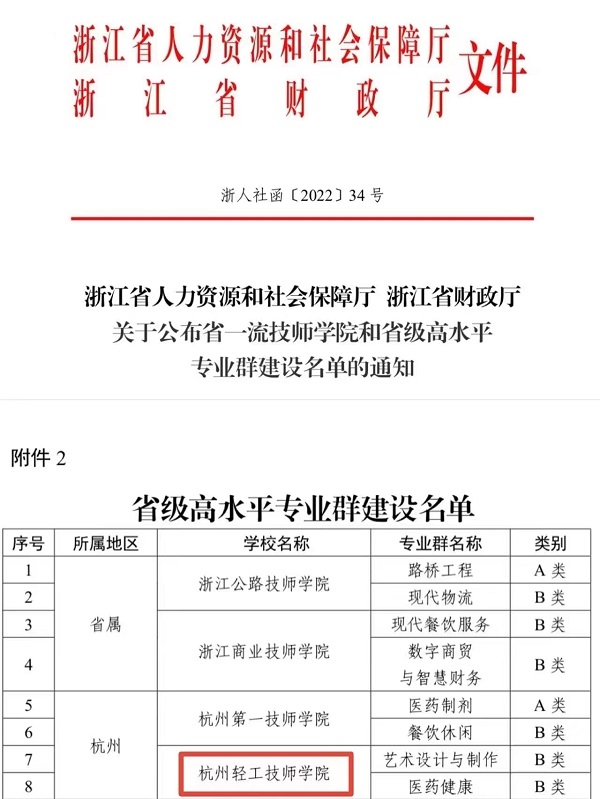 近日,从浙江省人力资源和社会保障厅传来喜讯,我院“艺术设计与制作”及“医药健康”专业群入选浙江省技工院校省级高水平专业群建设项目。